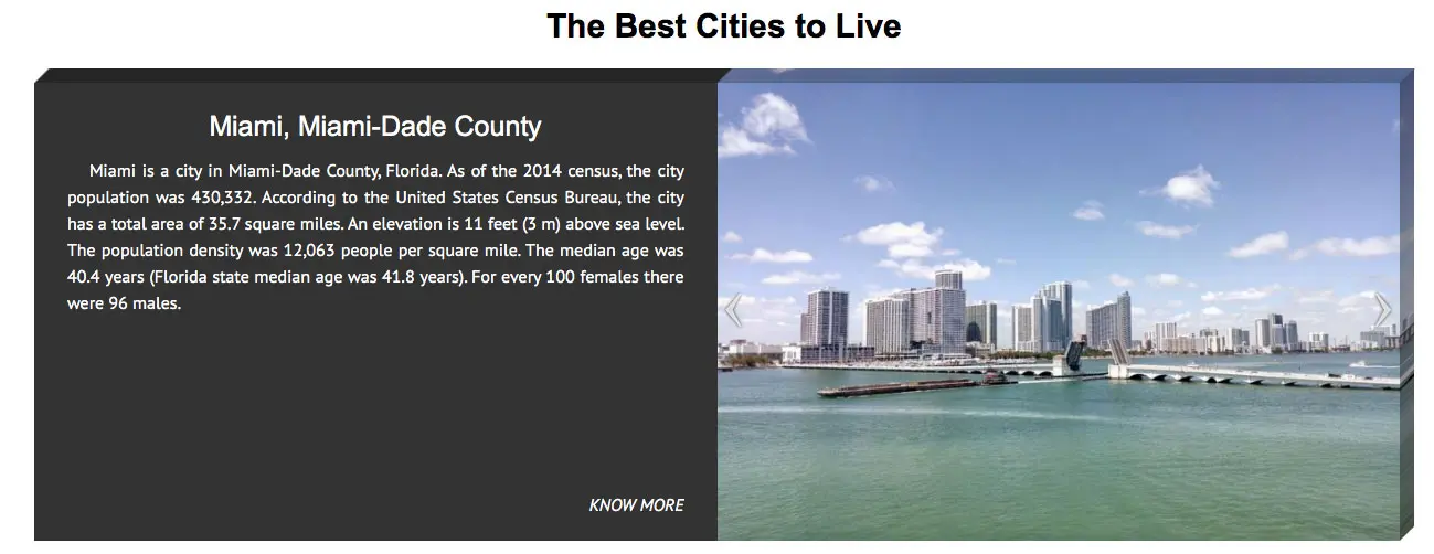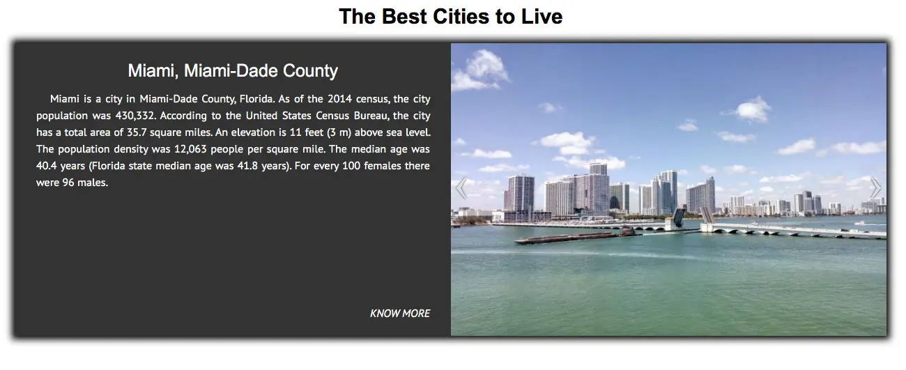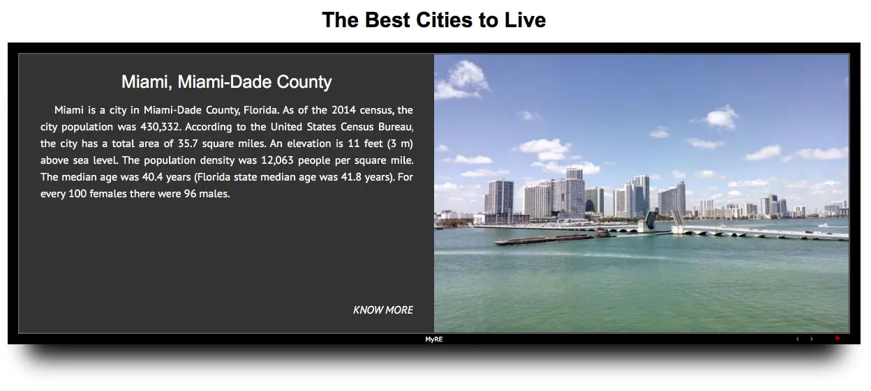 The Cities Slider is a powerful way to highlight key markets you serve. Use it to feature the 5 biggest cities, showcase your own custom areas, or even display your personal property listings.