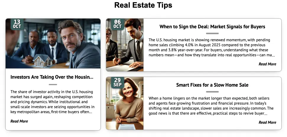 Each post delivers helpful tips for home buyers and sellers and is based on current U.S. housing market context. No writing, no uploads — we do it for you.