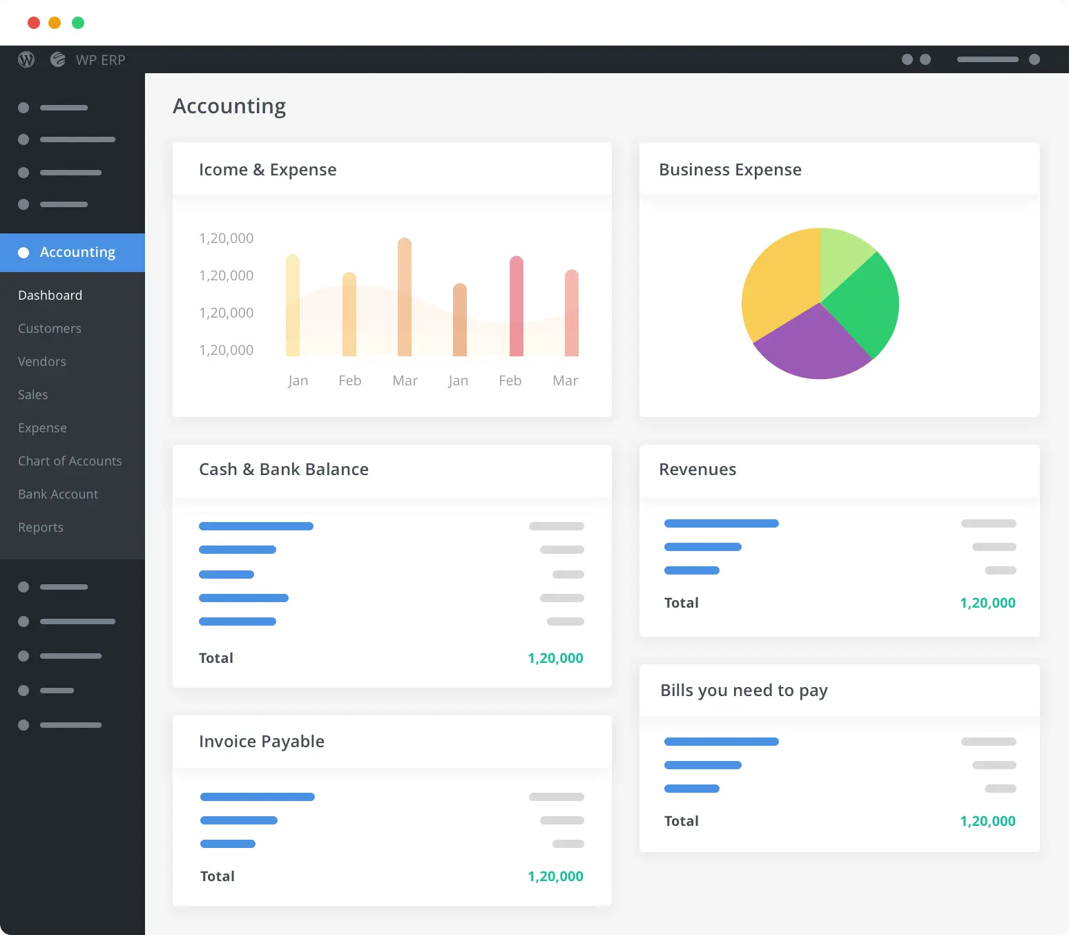 Take total control of your company’s finances in real time with the Accounting module. Manage customers, vendors, sales, expenses, bank account and various reports. Generate live and detailed reports and make transactions, generate invoices and pay employees all from one place.