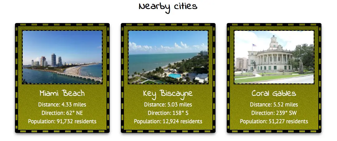 When a city is selected in the Location Search, nearby cities will also be displayed with distance, direction, and population details. This feature makes it easier for buyers to compare neighborhoods and discover the best place to live. Choose the style that matches your website design.